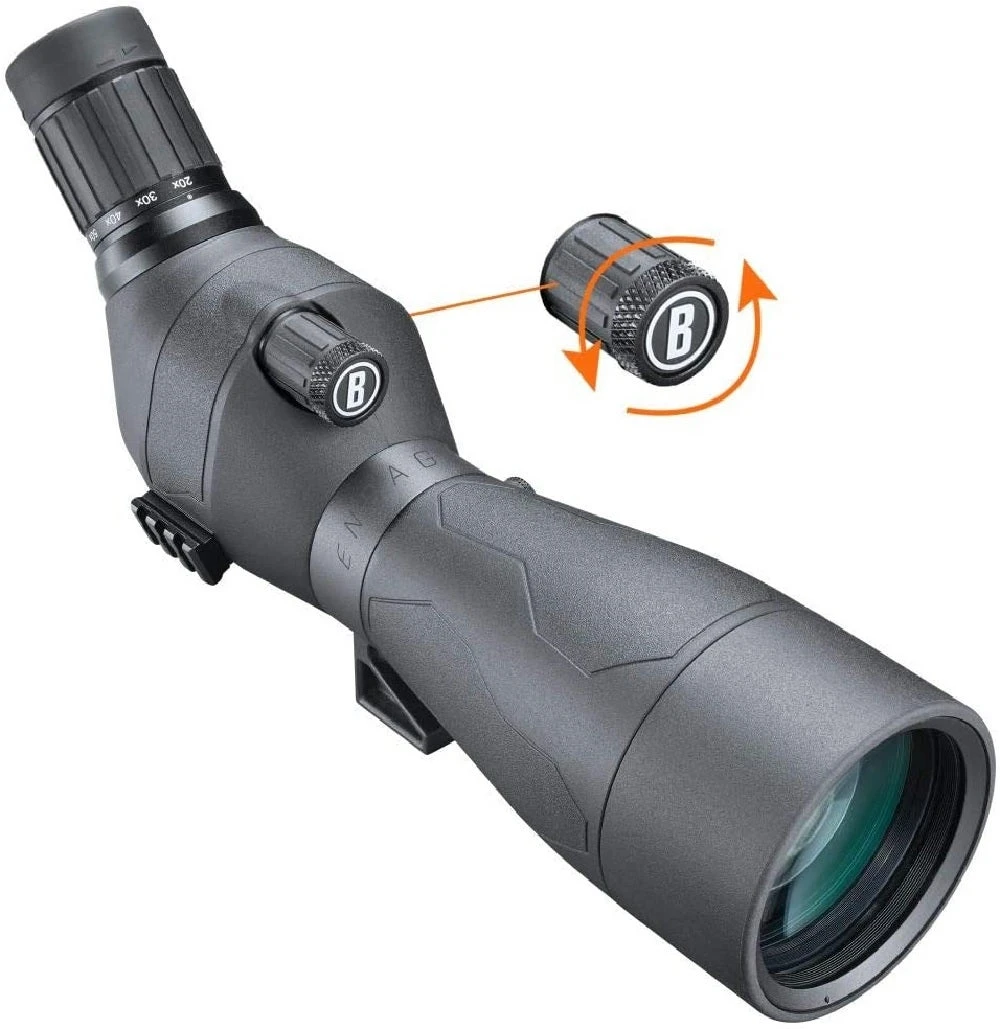 From the forest to the mountains to survey the wonders of the night sky, the 45Β° angled viewing Bushnell 20-60×80 Engage DX Spotting Scope is designed to provide power and performance to new and experienced users alike for hunting, birding, and general glassing in all environments. Its broad zoom range allows you to scan the landscape for targets at low power and quickly dial up the magnification to 60x to make detailed observations of distant subjects. Its combination of magnification and objective lens diameter makes this spotter ideal for beginner astronomers, delivering views of the moon and larger planets, with the ability to survey the night sky for comets or to view constellations.