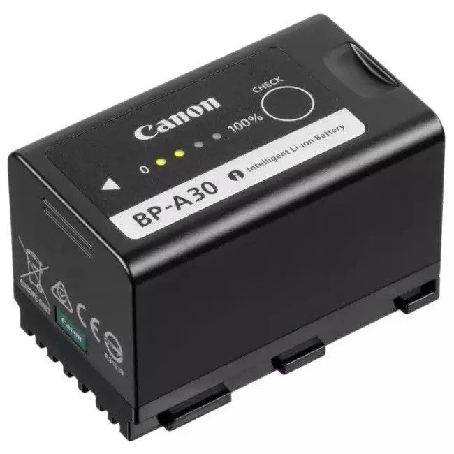The Canon BP-A30 Battery Pack battery pack mounts on your camera, providing 45 watt-hours of power. It is a rechargeable lithium ion battery compatible with Canon’s Intelligent Battery system. The battery features a removable contact cover that can help keep the contacts clean and help prevent short circuit discharges when the battery is not mounted on the camera.