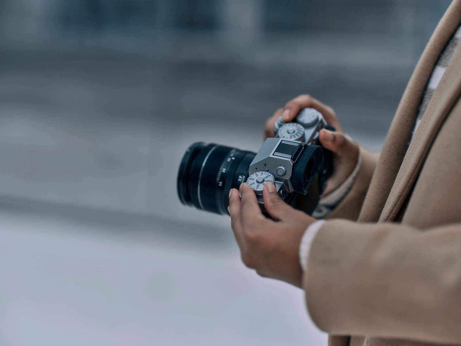 - The X-T5 features three dials on the top panel for controlling ISO, shutter speed and exposure compensation.