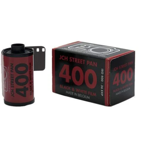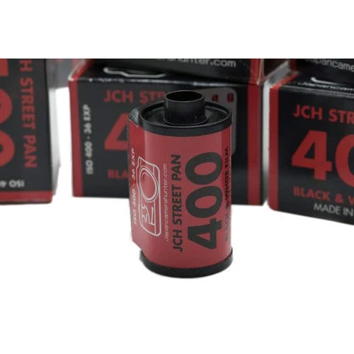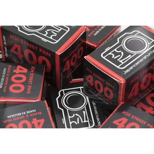 Japan Camera Hunter StreetPan 400 is a high-speed panchromatic black and white negative film featuring a nominal sensitivity of ISO 400/27° and a fine grain structure. Using a unique two-layer emulsion, this film is ideal for working in low-light situations and also retains a low grain profile that makes it especially well-suited to scanning. Also distinct, this film has spectral sensitivity to 750nm, which helps to cut through atmospheric haze and fog for greater clarity and contrast. This extended red sensitivity also benefits working in lower light conditions, such as during dawn and dusk, and its wide exposure latitude allows you to rate the film between EI 200-500 for acceptable results. It has low base fog levels when processed at high temperatures, making it suitable for high volume processing, and the emulsion is coated on a 100µm-thick transparent polyester base. Additionally, base substrate layers offer permanent anti-static qualities and a gelatin coating has also been applied to the back layer to resist scratching.