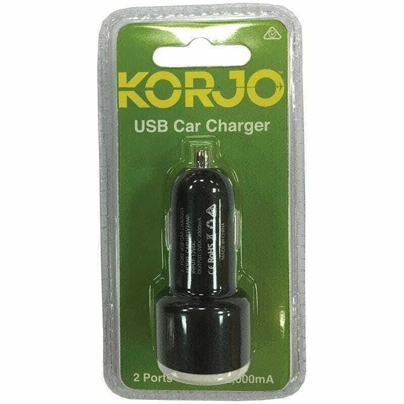 The Korjo 2 Port in Car Charger is capable of charging two devices simultaneously, this in-car USB charger is ideal for use with smartphones and tablets. It converts the cigarette lighter in your car into a PowerPoint for charging on the move.