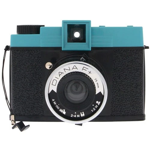 The original teal/black-coloredΒ Lomography Diana F+ Medium Format Camera is a stylish 120 format medium format camera designed to give you a unique look with its plastic build and 75mm removable lens. This lens functions with the use of a zone focusing system that will help you get your subjects in focus quickly and easily. Also, when the lens is removed you can stop down the aperture on the camera to make a pinhole. There are even two shutter speeds to select from, a normal daytime shutter and a bulb long exposure for night and low light conditions.