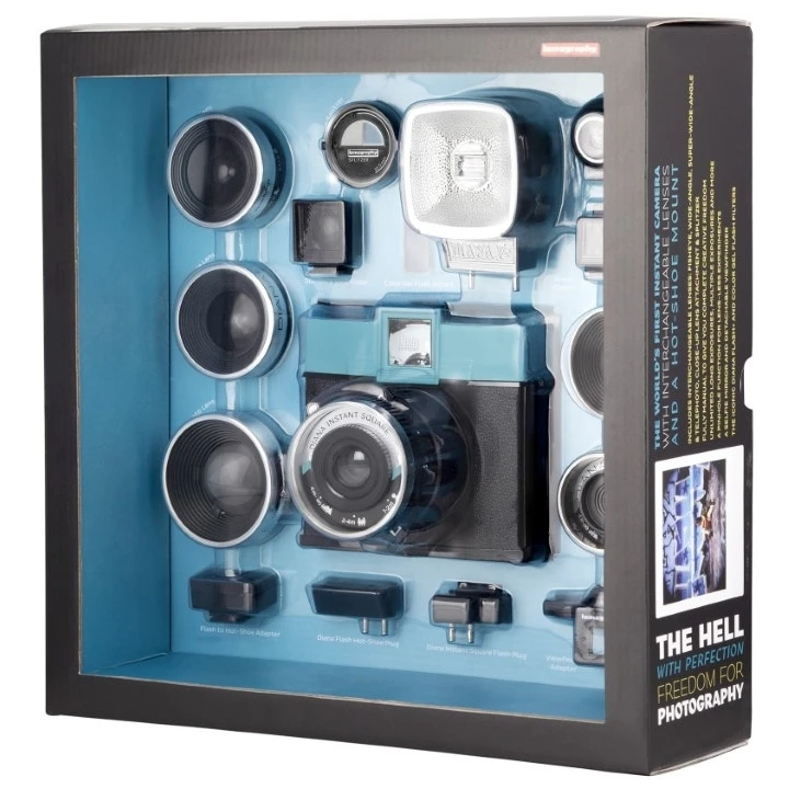 Inspired by the original 1960s medium format Diana camera, theΒ Diana Instant Square Deluxe KitΒ sprinkles your shots with all the striking effects that made its predecessor an analog classic. Shake off expectations and let the Diana Instant Square fill your frame with unpredictable beauty. Thereβs no re-take, no post-production polishing β you snap the shot, and seconds later you hold a beautiful picture filled with strong, saturated colors and soft, moody vignetting in your hands. The Diana Instant Square electrifies your life with lo-fi love, opening up a whole world of creativity and freedom.