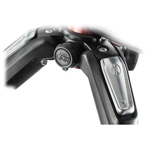 The top casting of the 055XPRO3 has an Easy Link connector for supporting a photo or video accessory (such as an LED light, flash, reflector, or other piece of equipment) on an extending arm or bracket, and making the tripod into a practical mobile studio.