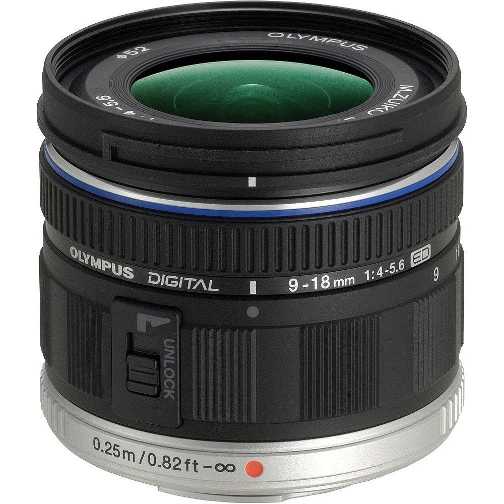 A versatile and compact wide-angle zoom, the M.Zuiko Digital ED 9-18mm f/4-5.6 Lens from Olympus is an 18-36mm equivalent lens for Micro Four Thirds mirrorless cameras. The advanced optical design couples with a retractable lens design to realize a sleek form factor while maintaining consistent sharpness and illumination throughout the zoom range. Two Dual Super Aspherical elements, one aspherical element, and a high refractive index element control spherical aberrations and distortion for notable sharpness and resolution, and one extra-low dispersion element reduces chromatic aberrations throughout the zoom range for high clarity and colour accuracy. The lens is also characterized by its Move & Still Compatible autofocus system that is quick, quiet, and smooth to suit both photo and video shooting applications.