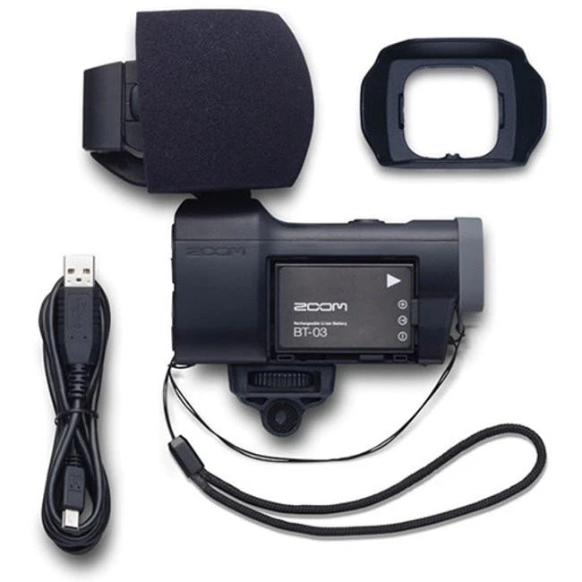 By connecting the Q8 to your computer via USB you can use it as a card reader or a USB microphone. You can even use it as a high-quality USB webcam to stream audio and video. The USB port also provides power for charging the included 1700mAh lithium-ion battery. Also included with the Q8 are a foam windscreen, USB cable, and a 1/4″-20 to a three-prong adapter for use with GoPro-style mounting accessories.