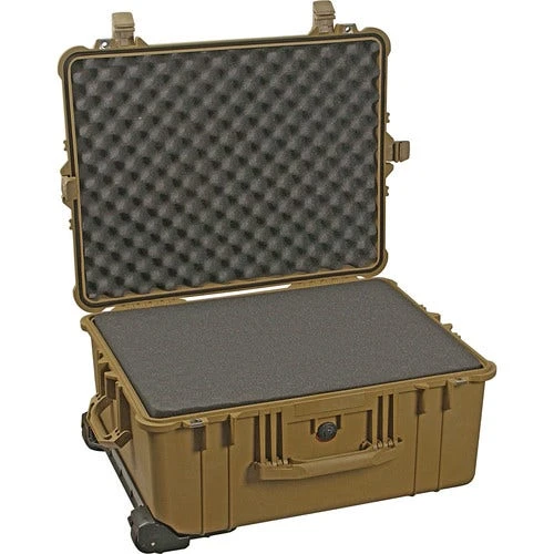 The Pelican 1610 Case with Foam (Desert Tan) is an unbreakable, watertight, airtight, dustproof, chemical-resistant and corrosion-proof hard case used to carry any kind of equipment that needs to be protected from the elements.