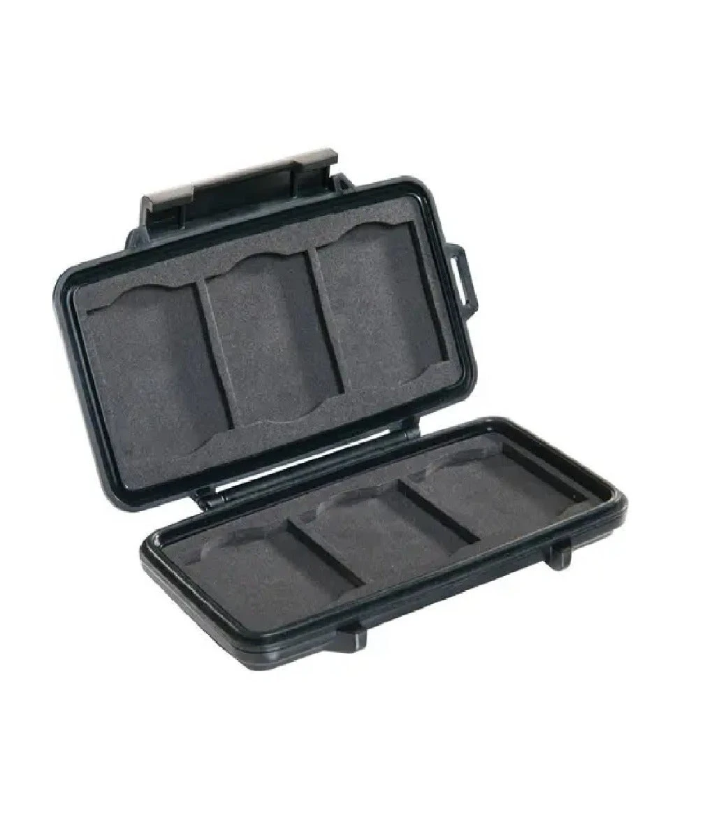 TheΒ Pelican’s 0945 Memory Card CaseΒ protectsΒ up to 6 of your Compact Flash cards at once! Made the Pelican way – which is to say tougher than tough – this Memory Card Case snugly holds the cards in the removable, shock-absorbing liner. Additionally, the water-resistant seal (IPx4) ensures that your cards will be safe from moisture, even if the case is submerged in water.