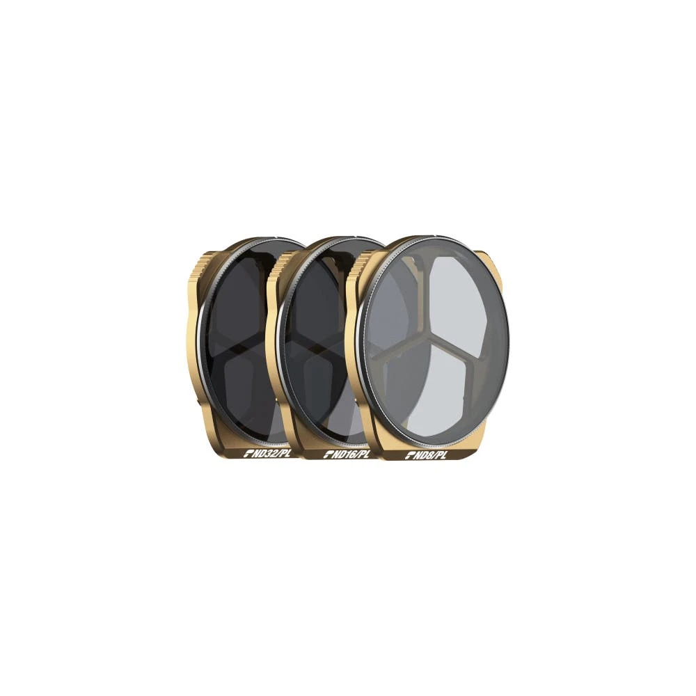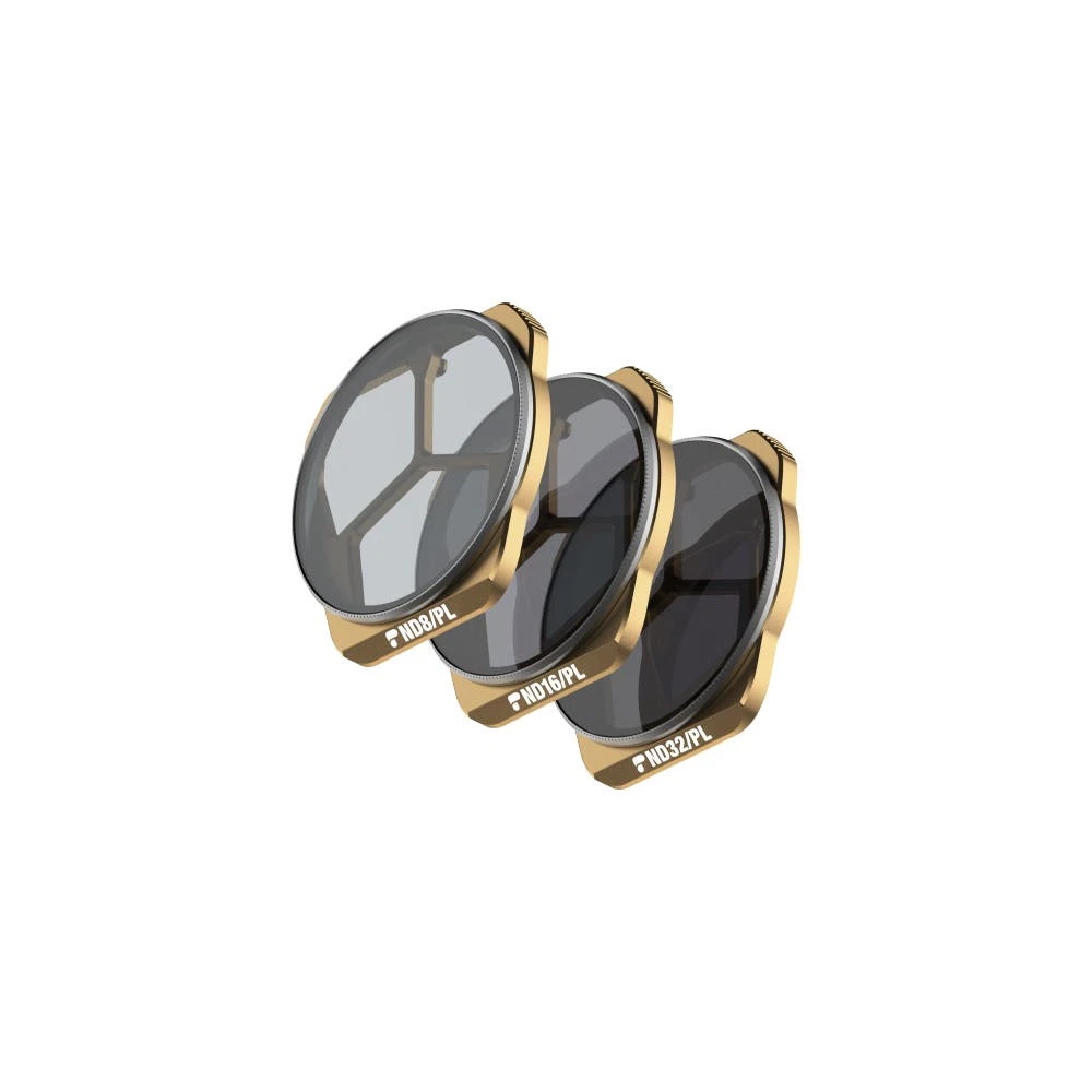 The PolarPro DJI Mavic 3 Pro Vivid Collection ( ND8/PL, ND16/PL, ND32/PL) combines two filter effects (ND + Polarization) together into one single glass element. Included in the set are ND8/PL, ND16/PL, ND32/PL filters to reduce shutter speed and cut glare in bright and reflective conditions to produce stunningly saturated colors. To preserve max flight time and ensure gimbal optimization each filter features a lightweight aerospace aluminum frame. With polarization indicators etched onto the frame, these filters provide pinpoint adjustments to achieve your desired light polarization.