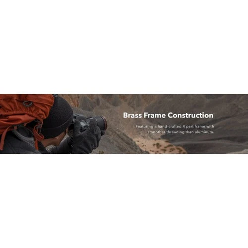 The quartz glass is set within a brass filter ring with side knurlings that can be rotated in order to adjust the intensity of the polarization effect. Together, the brass material and knurlings prevent jamming and provide additional strength, as well as a textured grip when mounting or removing this filter from a lens.
