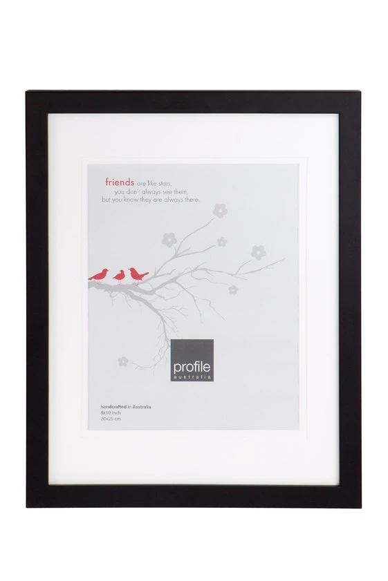The 10420 Deluxe frame from Profile is timeless flat black moulding 20mm wide and 20 mm wide. This frame is supplied with a double white acid free photo safe matt and fits both a 11×14″ print (28x35cm) photo without matt or a 8×10″ (8x10cm) photo with the matt. This frame is proudly Australia made with a lifetime guarantee on workmanship.