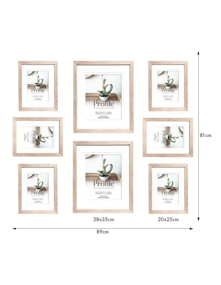 TheΒ Deluxe Gallery Photo Wall Frame Set D – 8 Frames – Polar Birch contains the Elegant 20mm(W) x 20mm(D) solid wooden picture frames, made in Australia using the finest quality of eco-sustainable materials.