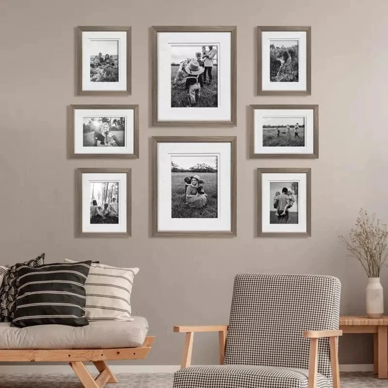 KeyΒ FeaturesΒ ofΒ theΒ Deluxe Gallery Photo Wall Frame Set D – 8 Frames – Stone Ash