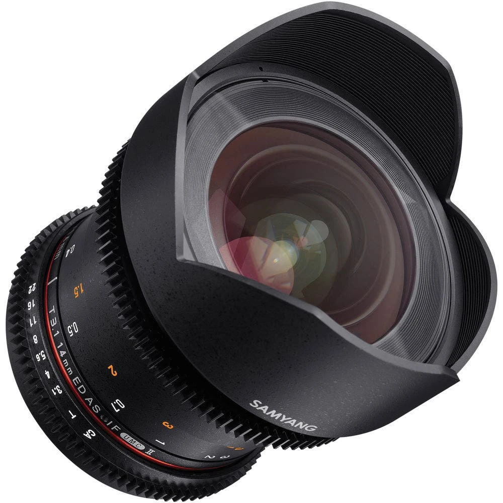 Samyang Optics 14mm T3.1 VDSLR ED AS IF UMC II is a wide angle manual focus cine lens designed for full frame sensor sizes.