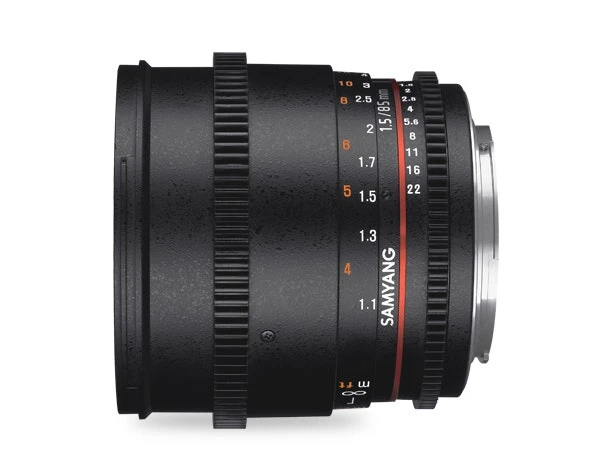 Samyang 85mm T1.5 VDSLR AS IF UMC II is carefully designed for professional film and video works so the focus gear ring is installed for follow focus system. You may change the aperture quietly and smoothly with the uncoupled aperture gear ring. Also, distance scale and T numbers are marked on both sides of the lens for convenience.
