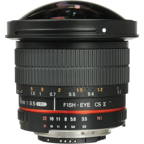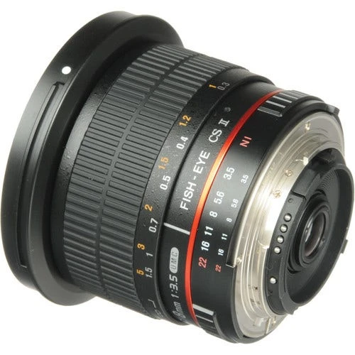 Samyang 8mm 1:3.5 Aspherical IF MC Fish-eye CS is the high-class wide-angle lens designed for DSLR cameras with APS-C sensor. This really is a sophisticated optical construction based on ten lenses arranged in seven groups, including one hybrid-aspherical lens which reduces chromatic aberration level. All lenses are covered with multi-layered, anti-reflective coating of new generation. Optical parameters are thus of the highest-possible quality. Samyang 8mm f/3.5 FISH-EYE CS (Nikon F) is a purpose-built lens intended to be used in conjunction with a Nikon F lens mount.