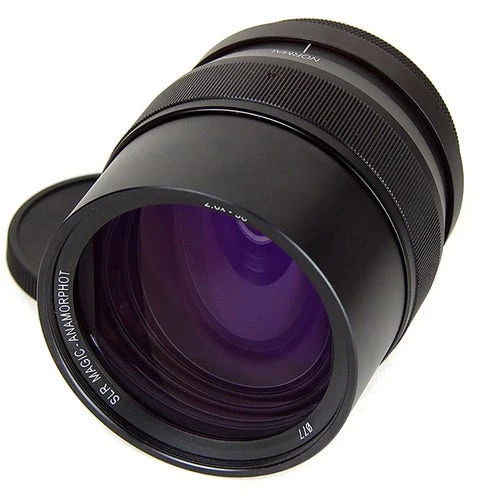 The Anamorphot-50 features adjustable focus marked normal and near. The near adjustment allows you to focus on subjects closer than approximately 26′ away; setting the adapter to normal allows you to focus on subjects from approximately 26′ to infinity. It mounts to lenses with a non-rotating front and a front thread diameter of 62mm. SLR Magic recommends that the Anamorphot-50 2.0x be used with lenses that have a front element that is physically no larger than 50mm in diameter.