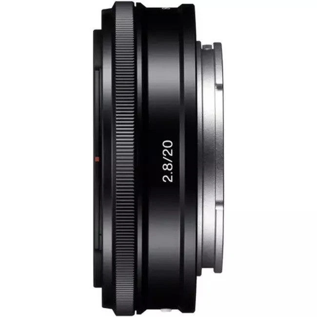The Sony 20mm f/2.8 Alpha E-mount Lens is a compact 20mm prime lens for the NEX line of APS-C sized mirrorless cameras. Its 35mm focal length equivalent is 30mm, classifying it as a wide-angle lens with multiple applications. Its maximum aperture of f/2.8 is bright enough for low-light capture and shallow depth of field imaging, while its optical design consists of three aspherical elements which correct distortions and aberrations and provide clear, high contrast, detailed images. A smooth, quiet internal stepping motor is used for both focus drive and aperture actuation and makes this lens ideal for shooting video. Less than an 25mm long and built with aluminium alloy, it is both compact and durable. Autofocus and Direct Manual Focus, which allows for precise manual focus even in AF mode, is supported for both photo and video.