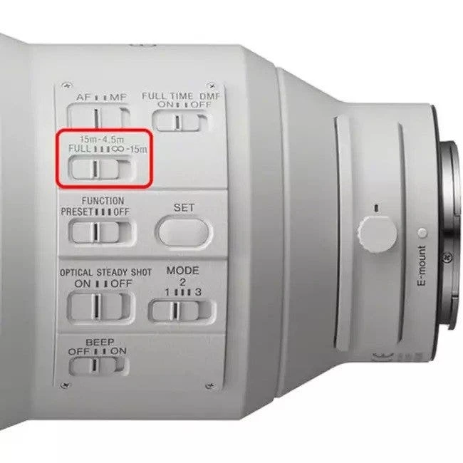 - Focus range limiter switch and preset focus functions increase focusing efficiency either within a certain constrained range or immediately to a specified focusing point.
