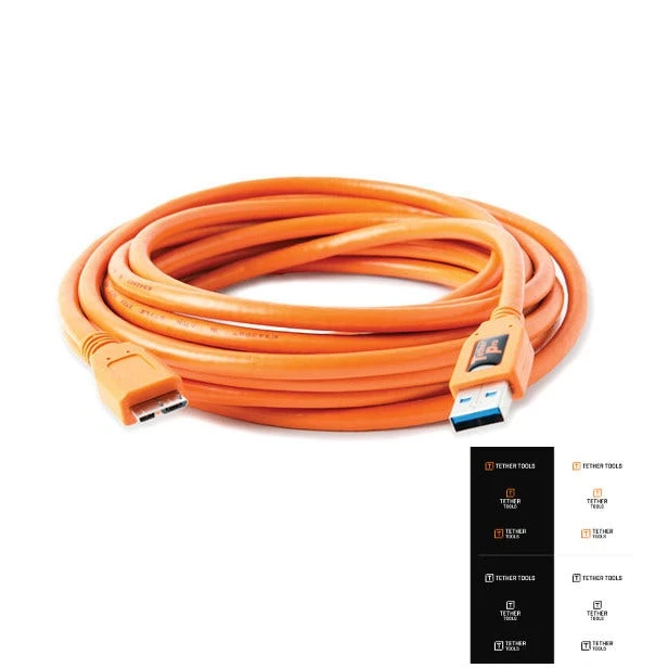 Transfer data quickly and reliably with the 4.6 m orange TetherPro USB 3.0 Male Type-A to USB 3.0 Micro-B Cable from Tether Tools. This cable comes with a standard USB Type-A connection that connects to desktops, notebooks, and tablets, and a USB 3.0 micro-B interface is on board to power and transfer data for portable storage drives. The cable is fully shielded to filter out signal noise and reduce transmission errors. USB 3.0 technology provides transfer speeds of up to 5 Gbps when used with compatible devices.