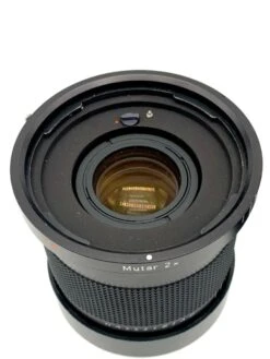 This preowned original Hasselblad Zeiss Mutar 2X Teleconverter T* for 500-Series Camera SN: 7348326 Doubling teleconverter made by Zeiss for the Hasselblad V system. Introduced in 1985. Has T* multicoated elements. Metal body available in black. This The Carl Zeiss Mutar 2x teleconverter is mounted between the lens and the camera using a bayonet mount.