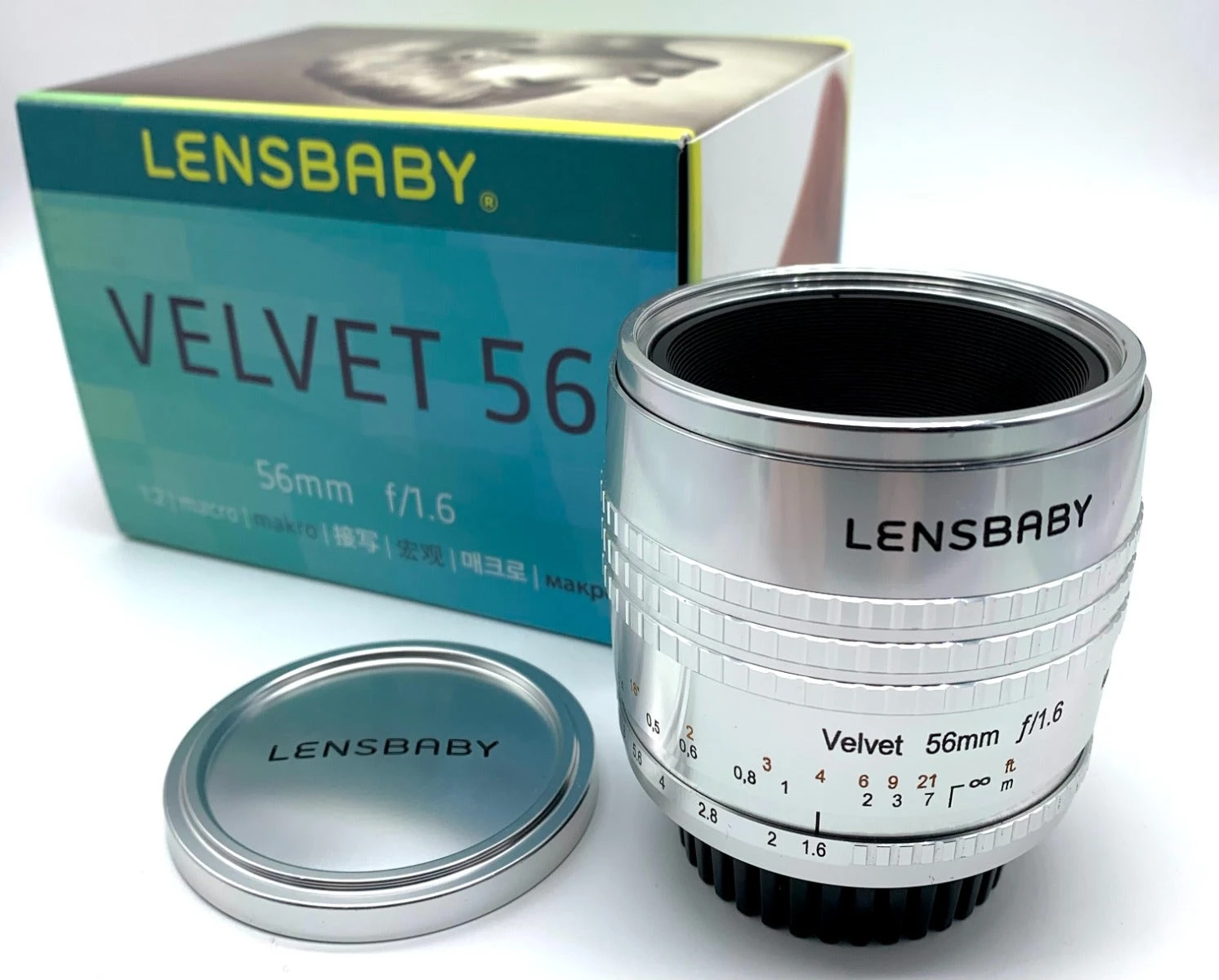 This manual focus Pre-owned Lensbaby Velvet 56 is in very clean condition. It is reminiscent of classic 20th-century lenses. This Nikon F mount Velvet 56mm f/1.6 SE Lens from Lensbaby produces a uniquely soft, glowing image quality that is well-suited to making expressive and ethereal portraits.Plus, focus up close on Velvet’s macro capabilities. Create miniature macro worlds, rich landscapes, otherworldly street scenes, and more with this versatile Velvet 56 art lens. Compose scenes that are lit from within, emanating glow at wide apertures. Shoot at darker apertures to give your photos a sharp, vintage look – with a subtle fall-off on the edges. Focus close to discover an entirely new, larger-than-life miniature world! The Velvet 56 is a 56mm f/1.6 manual focus lens. When used at bright apertures, Velvet 56 creates an ethereal glow over your entire image, from edge to edge. At darker apertures, the glow lessens and dissipates entirely by f/5.6, leaving a tack-sharp image with a film-like aesthetic and subtle softness at the edges of the frame. Velvet 56 also features a built-in 1: 2 macro capability with a minimum focus distance of 5 inches from the front of the lens. This all combines to make for a very versatile, creative shooting experience.