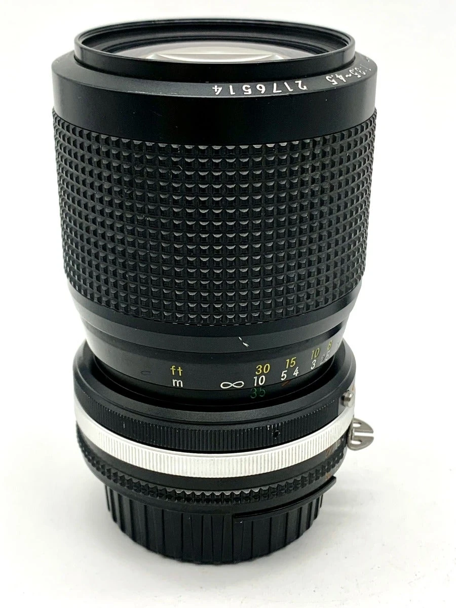 TheΒ Nikon Ai-s 35-105mm Zoom f3.5-4.5 S/N – 2176514 is a high quality 3x zoom universal lens for Nikon film cameras that covers a wide to telephoto zoom range, making it suitable for landscapes and Portrait photos. It is ideal as a travel lens. As well it has the fast f/3.5 aperture, and also has a Β special macro mode Β .