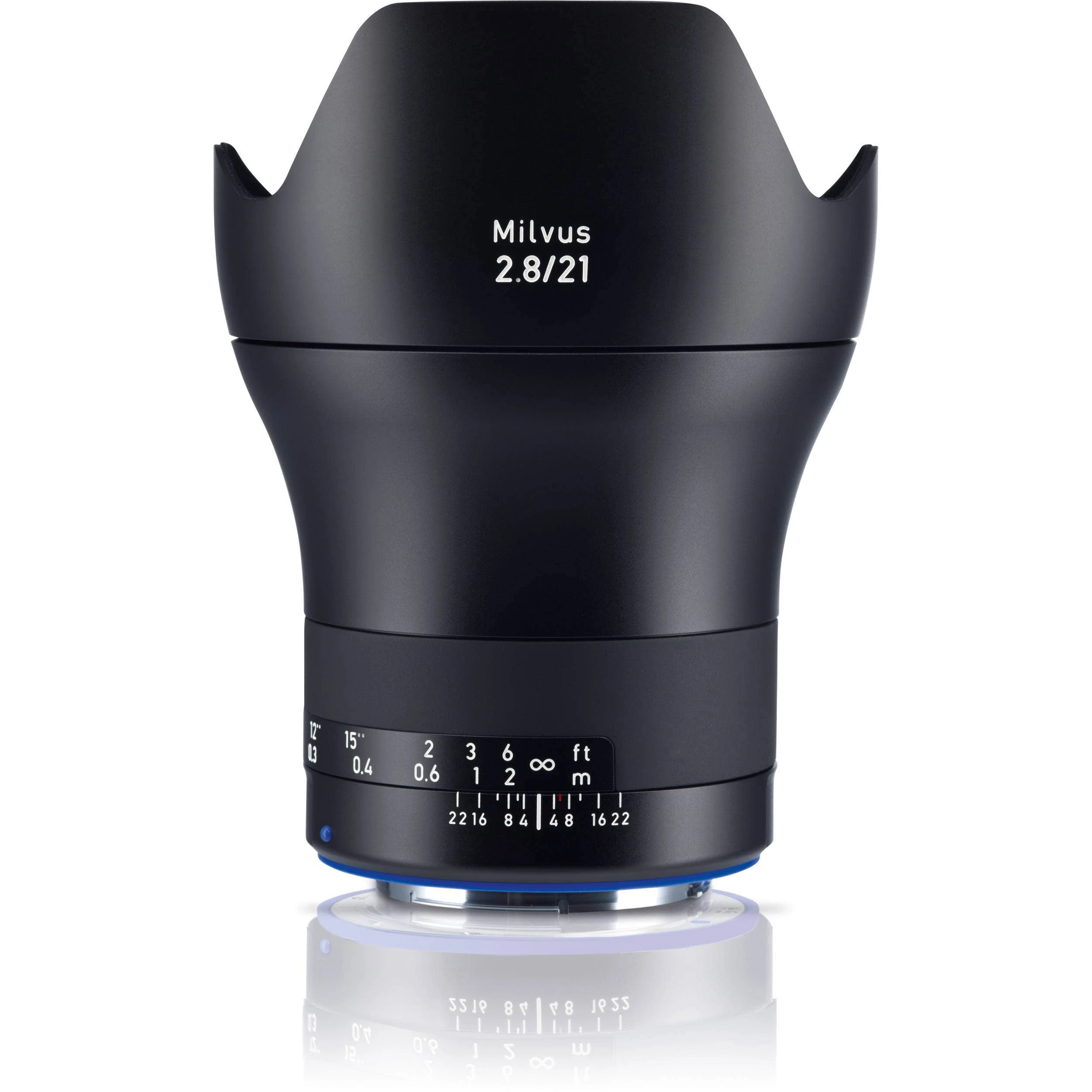 An expansive wide-angle for Canon EF-mount DSLRs, the ZEISS Milvus 21mm f/2.8 ZE Lens for Canon EF features a sophisticated optical design to control distortion and produce sharp, clean imagery with a dynamic perspective. A Distagon concept, along with a floating elements system, is employed for consistent performance throughout the focusing range and five anomalous partial dispersion elements are featured to control chromatic aberrations for increased clarity and color accuracy. For minimizing flare and ghosting, an enhanced ZEISS T* anti-reflective coating has been applied to benefit working in difficult lighting conditions.